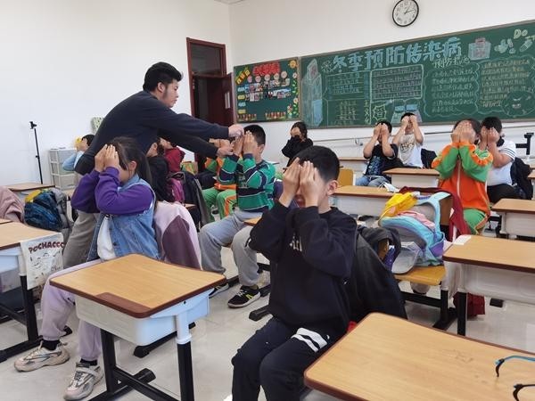 日照市实验中学体育教师赵嘉亮2022年参加工作,2024年他参加了国家体育总局在山东菏泽组织的明目功培训班。回到学校后,赵嘉亮在体育课上教孩子明目功,一边做一边讲解细节,同时把8分钟教学视频发到家长群,鼓励学生在家练习。