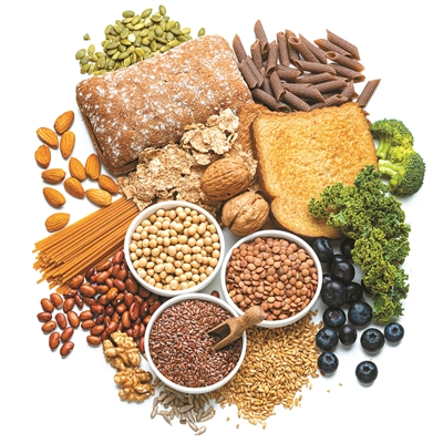 食物中的膳食纤维主要来自植物性食物如水果、蔬菜、豆类、坚果和各种谷类。食物的加工方式和精度对其中的膳食纤维的保留影响很大。